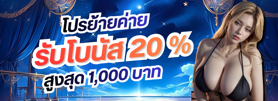 รับโบนัส 20% สูงสุด 1,000 บาท ( โปรโมชั่นนี้จำเป็นจะต้องฝากขั้นตํ่า 100 เท่านั้น)